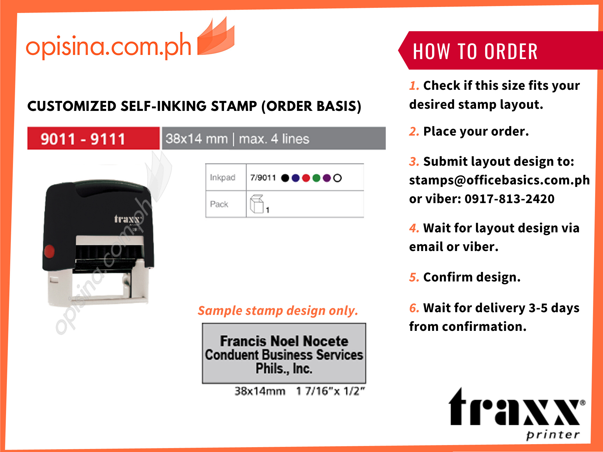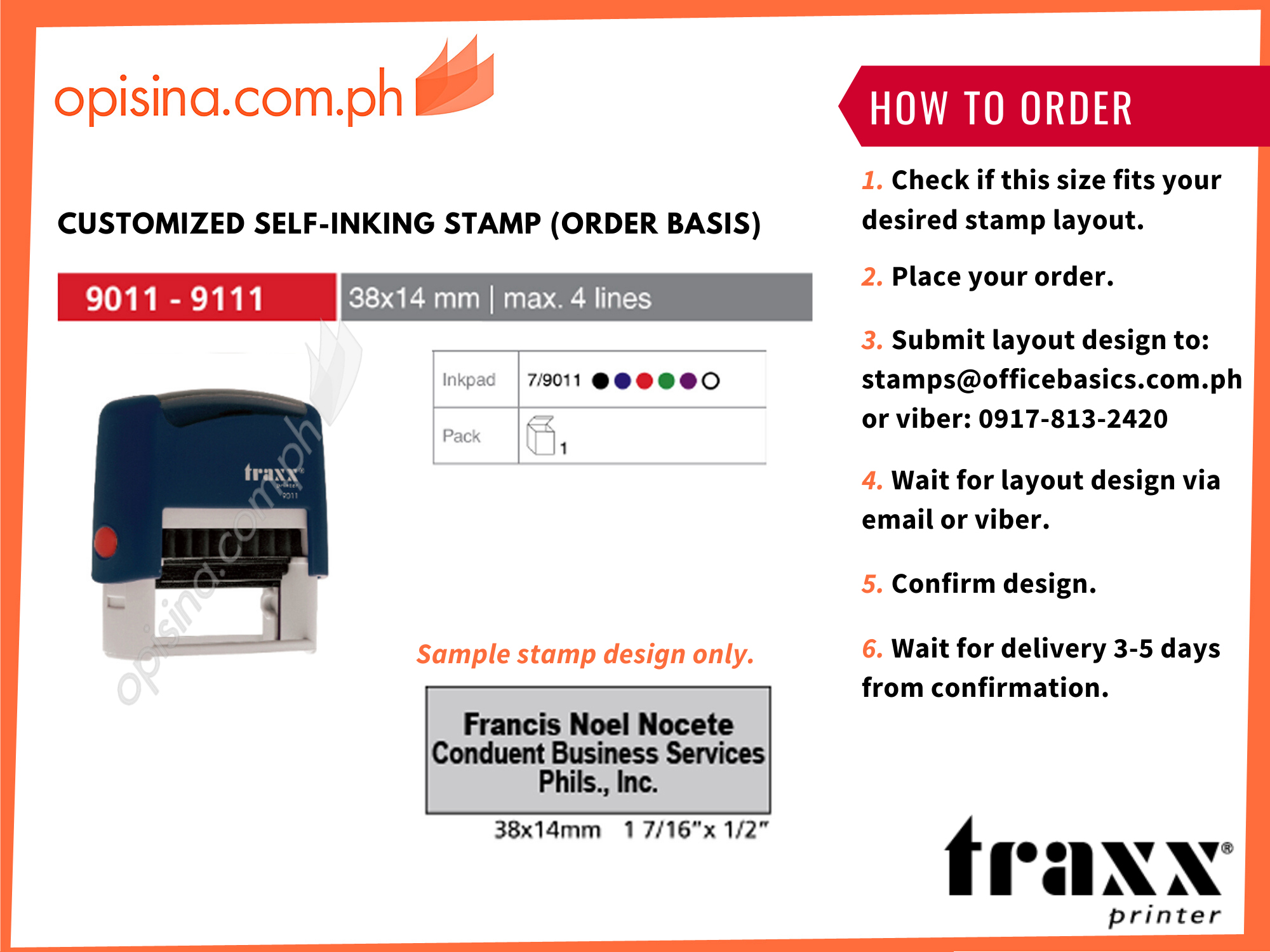 TRAXX STAMP 9011 38X14 MM ORANGE